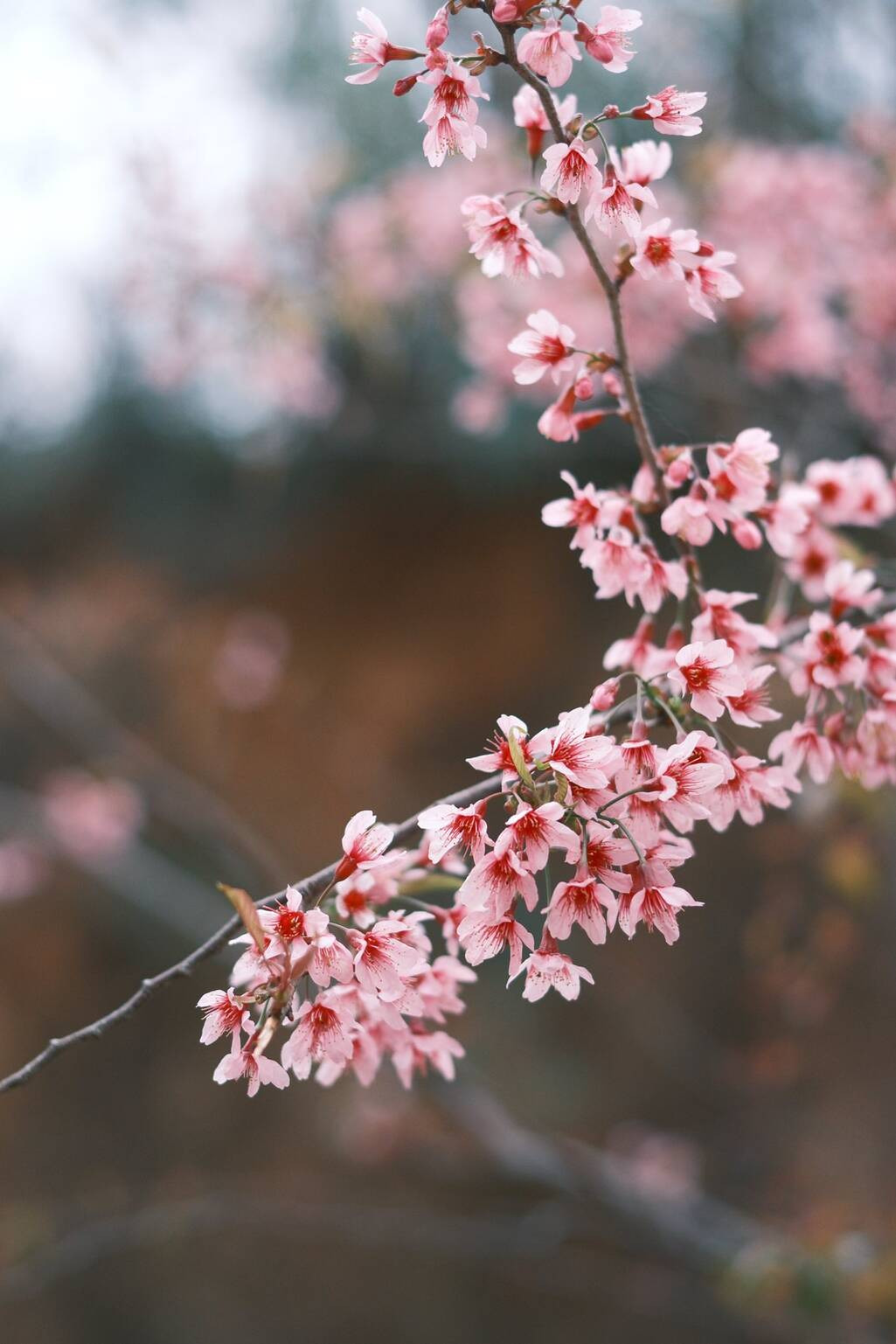 Màu hồng phớt của hoa anh đào làm sáng lên một góc trời của bản Phà Nọi giữa tiết trời đông lạnh giá.